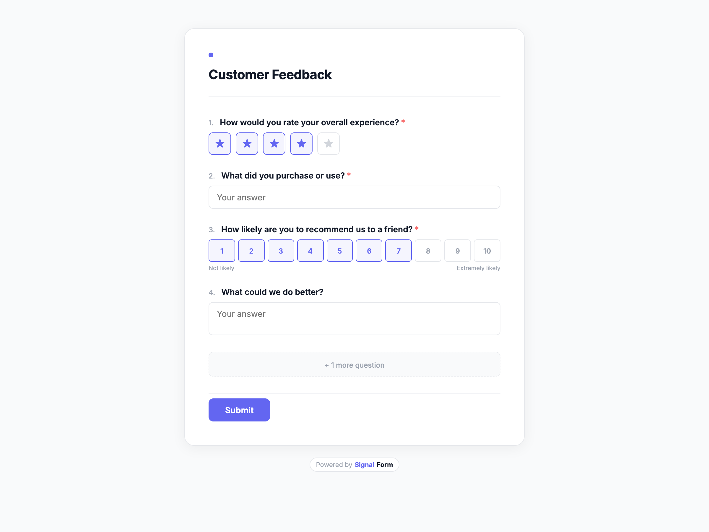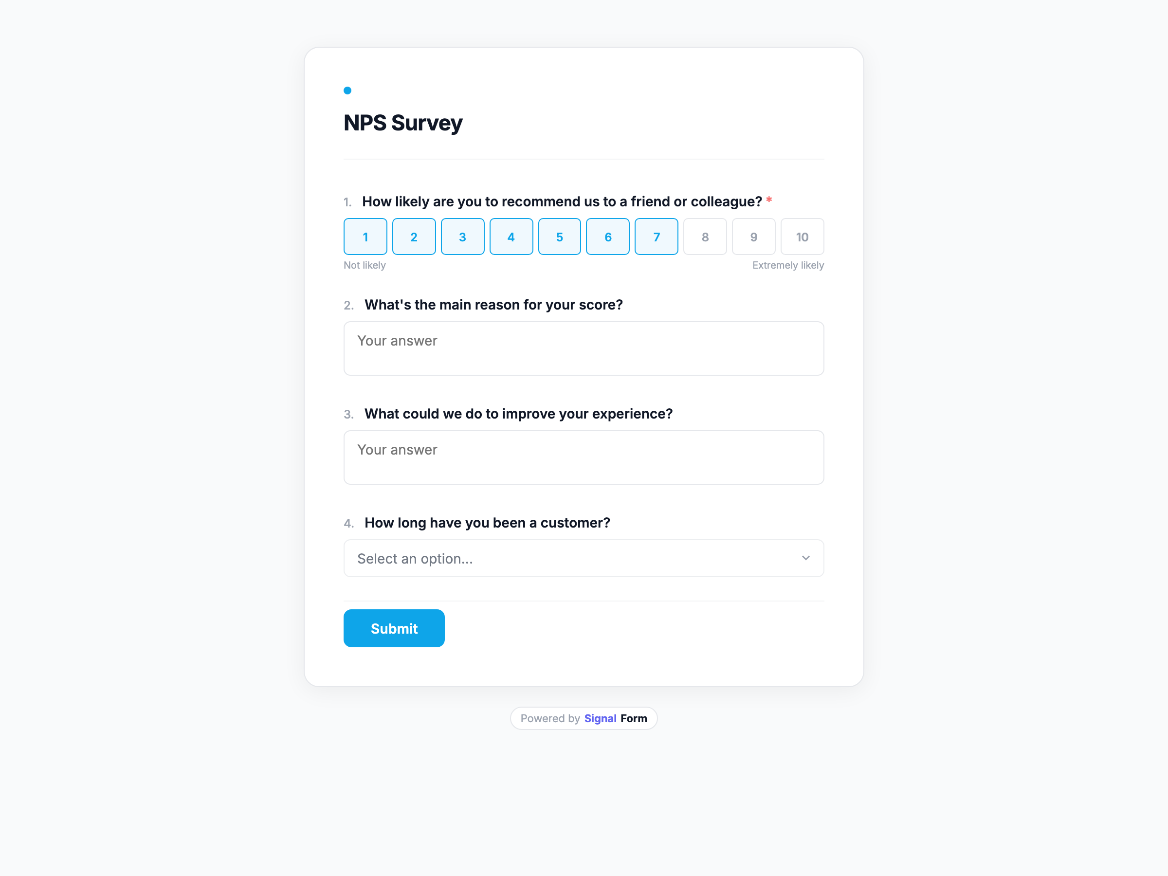 Measure customer loyalty with a focused Net Promoter Score survey.